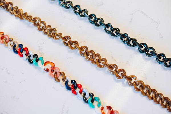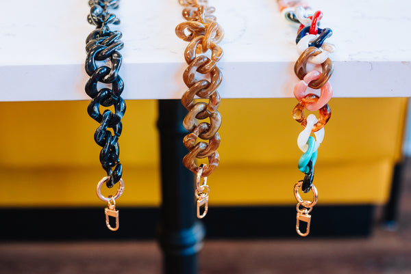 Upgrade your clutch game with our Chunky Link Bag Straps! These statement-making straps come in three eye-catching colors—multi, brown, and black—so you can mix and match with our acrylic clutches or the Rachel Barri Everyday Clutch. Choose your vibe: go short and sweet at 17.7" , for a crossbody moment go long and luxe at 47.25" for maximum versatility. Either way, you're adding serious style to your collection!